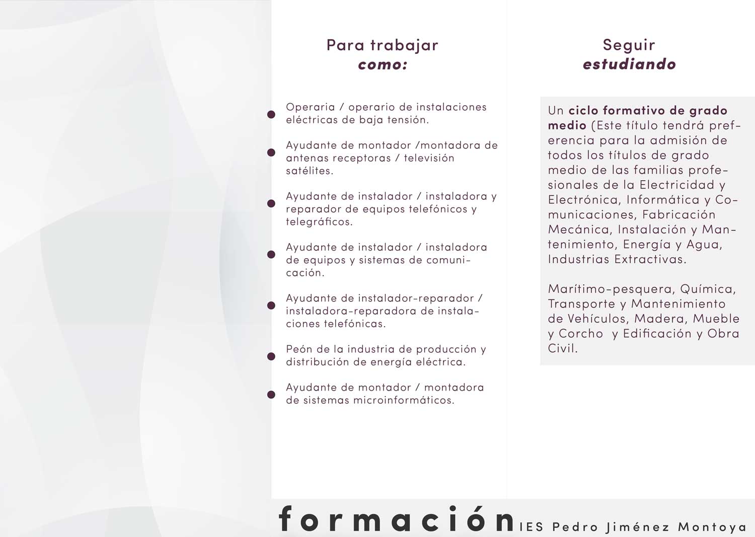 La competencia general de este título consiste en realizar operaciones auxiliares en el montaje y mantenimiento de elementos y equipos eléctricos y electrónicos, así como en instalaciones electrotécnicas y de telecomunicaciones para edificios y conjuntos de edificios, aplicando las técnicas requeridas, operando con la calidad indicada, observando las normas de prevención de riesgos laborales y protección medioambiental correspondientes y comunicándose de forma oral y escrita en lengua castellana y en su caso en la lengua cooficial propia así como en alguna lengua extranjera.